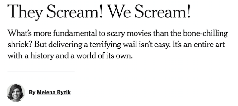 I was honored to be interviewed by The New York Times. It's a fun article that takes you behind-the-scenes of movie screams.